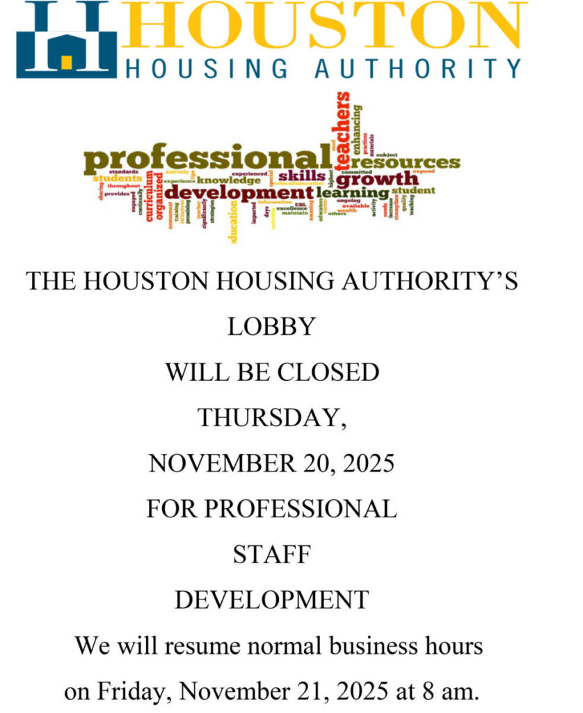 Houston Housing Authority Lobby CLOSED THURSDAY, NOVEMBER 20, 2025